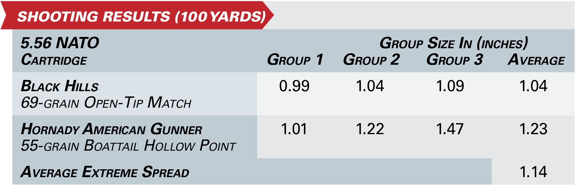 I fired three groups of five shots each from two different loads at 100 yards. The overall average across the six five-shot groups was a quite respectable 1.14 inches. Both the Black Hills Match load and the Hornady American Gunner had tight clusters that bracketed the perfect 1-inch mark. The EPR is not marketed as a special purpose rifle or competition rifle, but this particular sample seems to have ample precision for any reasonable task.
