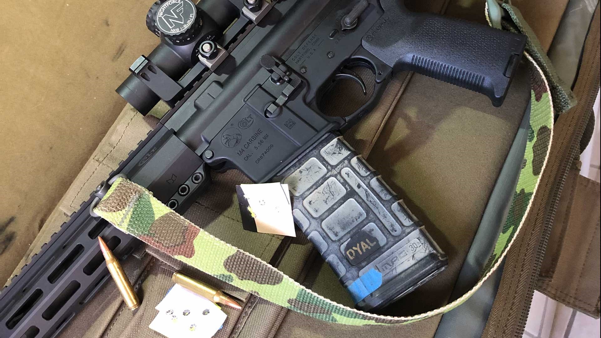 I shot the rifle a little with the provided sights, and as I confirmed zero, it seemed that the Colt had potential for above-average accuracy. I mounted a Nightforce NX8 1-8X compact scope and headed back to the range for some initial data. I was working on shooting from a tripod with my Pig Saddle, a clamping vise concept invented by a Marine Scout Sniper that swept the precision world a few years ago. A lightweight AR-15 fired from tripod while sitting is not quite the same as an ideal benchrest position, but it was stable enough to give an idea of how the rifle groups.
